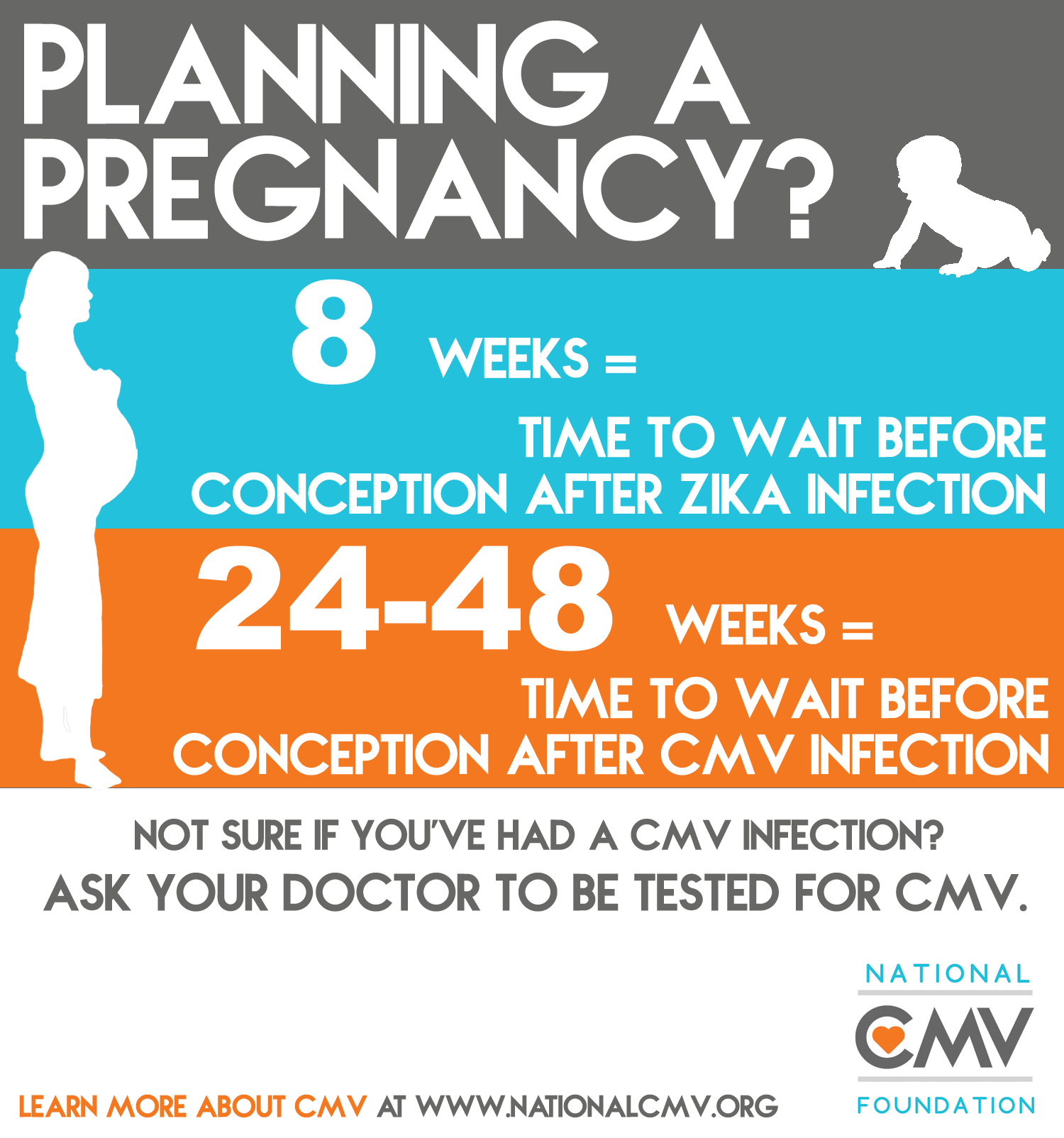 CMV IgG and IgM antibody tests. If a woman has recently been exposed to a CMV infection, it is recommended that she wait 6 to 12 months before trying to conceive to minimize the risk of CMV transmission to her unborn baby.